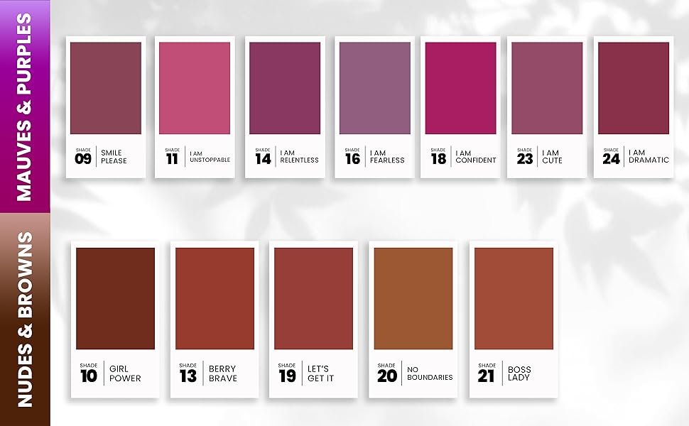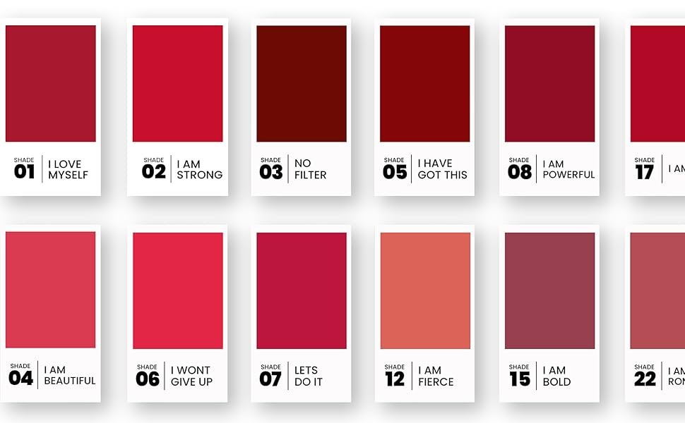 color 10-GIRL POWER, 11-I AM UNSTOPPABLE, 12-I AM FIERCE, 13-BRAVE, 14-I AM RELENTLESS, 02-I AM STRONG, 03-NO FILTER, 04-I AM BEAUTIFUL, 05-I HAVE GOT THIS, 06-I WON'T GIVE UP, 15-I AM BOLD, 16-I AM FEARLESS, 18-I AM CONFIDENT, 19-LET'S GET IT, 20-NO BOUNDARIES, 07-LET'S DO IT, 08-I AM POWERFUL, 09-SMILE PLEASE, 21-BOSS LADY, 22-I AM ROMANTIC, 23-I AM CUTE, 24-I AM DRAMATIC, 01-I LOVE MYSELF