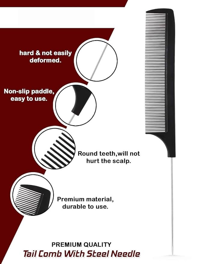 Tony &Guy Professional Antistatic TAIL COMB WITH STEEL PIN (Black)